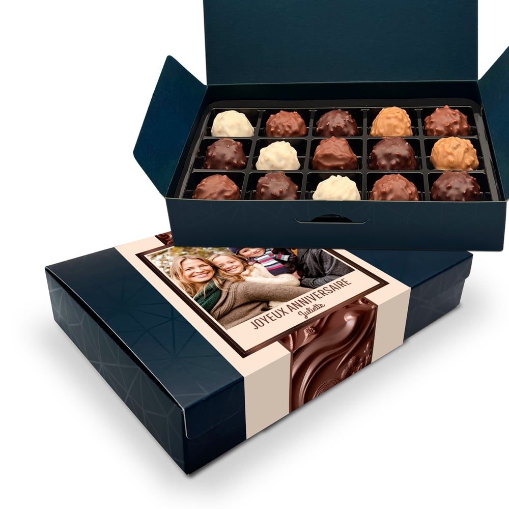 • Ingrédients : Sucre, masse de cacao, beurre de cacao, noisettes, amandes, poudre de lait, lactose, sirop de sucre inverti, stabilisant: sorbitol, poudre de cacao, émulsifiant: lécithines (soja), lait écrémé, lactosérum lait, arômes, sel.