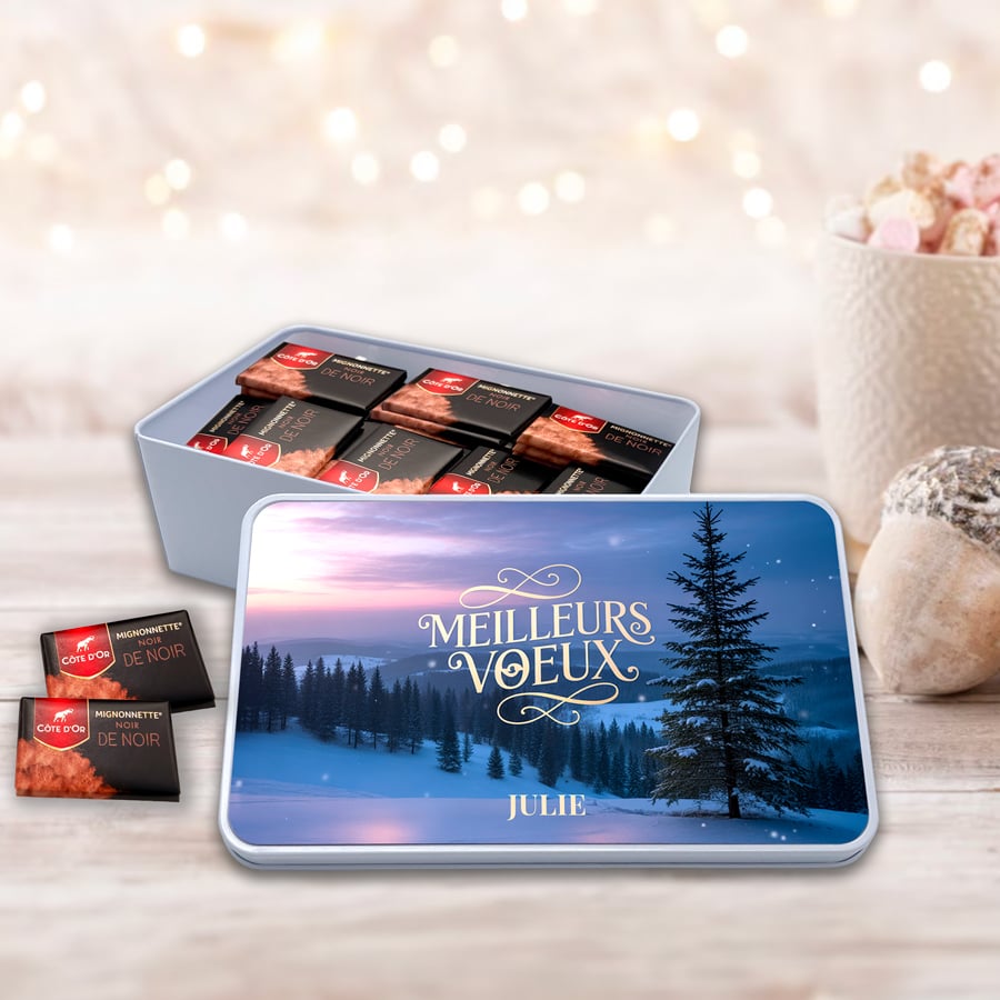 Boîte rectangulaire personnalisée – Meilleurs Voeux + chocolats Côte d’Or