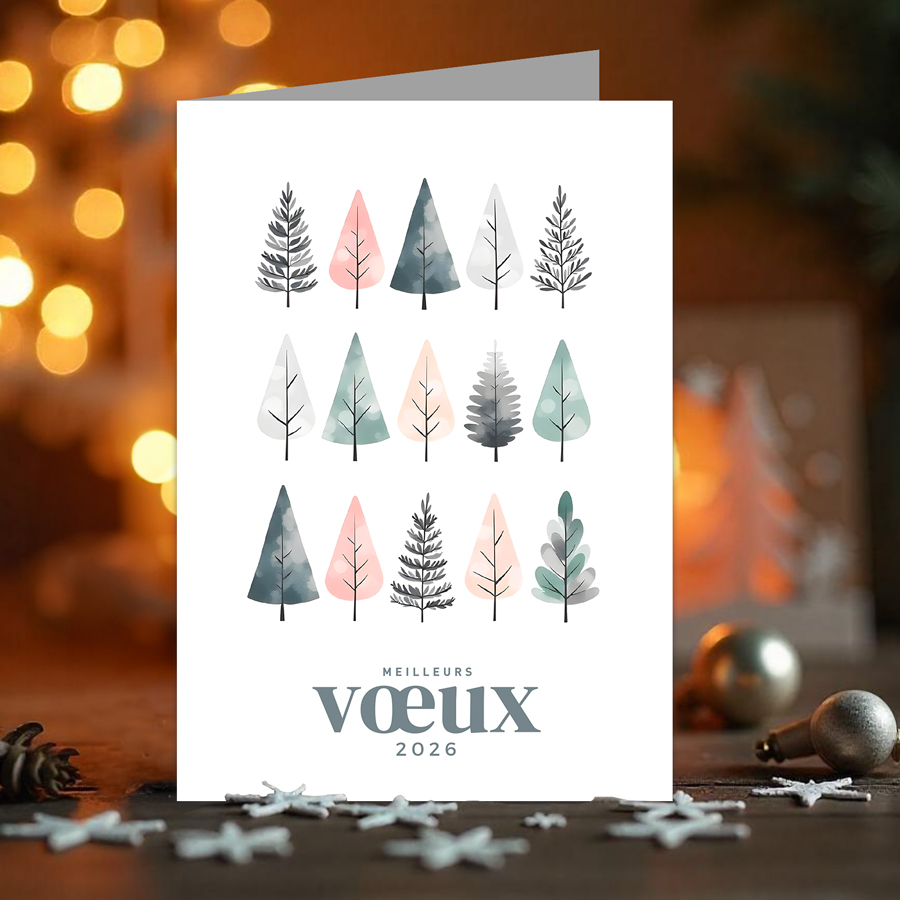- Type de carte : Carte de Voeux Pliée (4 faces)