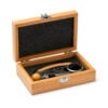 Un coffret sommelier raffiné en bambou, personnalisable avec votre photo. Il contient tout le nécessaire pour savourer une bonne bouteille : tire-bouchon, bouchon et anneau anti-goutte. Un cadeau élégant et original pour les amateurs de vin.