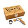 Un coffret sommelier raffiné en bambou, personnalisable avec votre photo. Il contient tout le nécessaire pour savourer une bonne bouteille : tire-bouchon, bouchon et anneau anti-goutte. Un cadeau élégant et original pour les amateurs de vin.