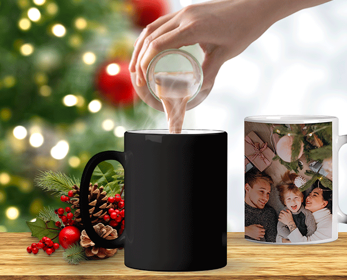 Le mug magique est recouvert d’un revêtement noir qui cache votre photo ou votre message lorsqu’il est froid. Mais dès qu’on y verse une boisson chaude… surprise ! L’image personnalisée apparaît peu à peu sous l’effet de la chaleur. Pour préserver cette magie, il est conseillé de laver ce mug à la main.